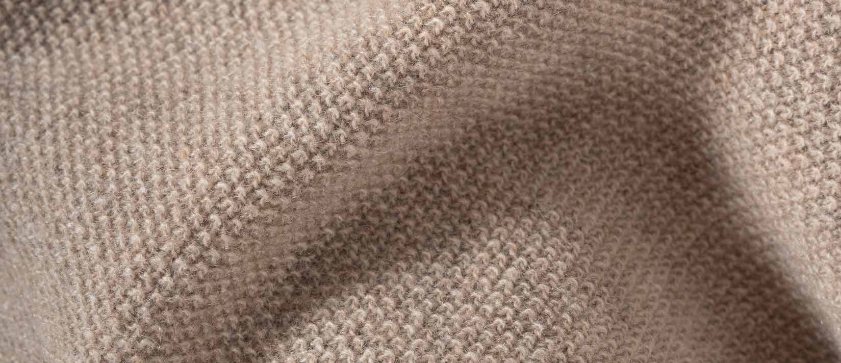 The recycled cashmere component comes from color-sorted used garments, avoiding the need to re-dye the fiber and further enhancing the sustainability of the process.
