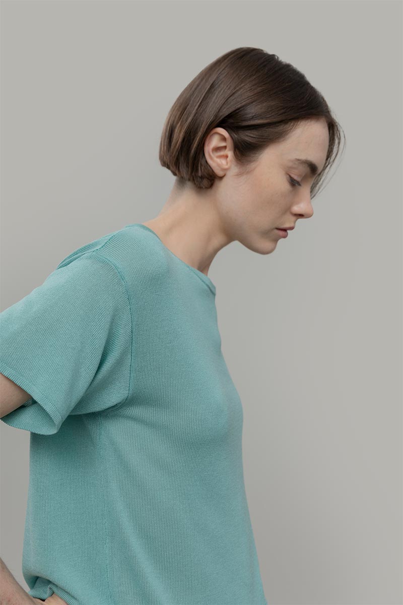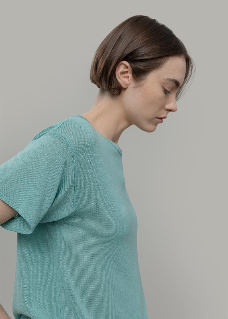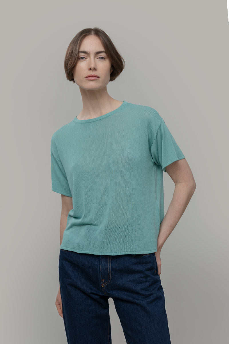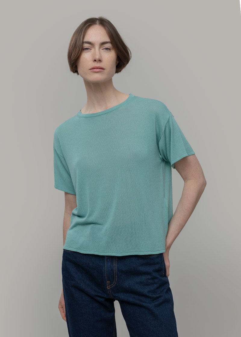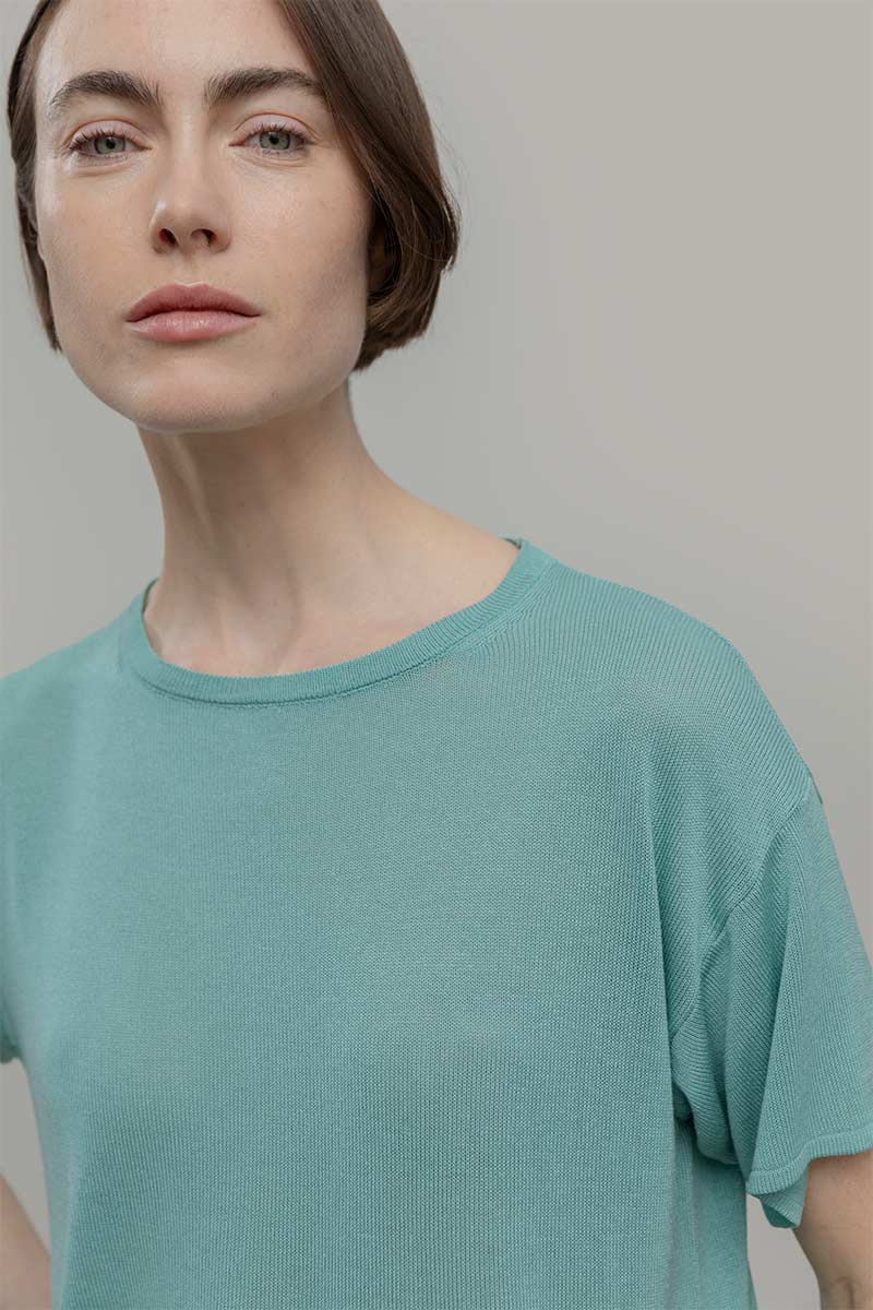 Virginia is a lightweight women's knit t-shirt with a crew neck and short sleeves. A cool and versatile piece, made from a soft and durable yarn combining recycled viscose and EcoVero™ viscose from FSC-certified forests.