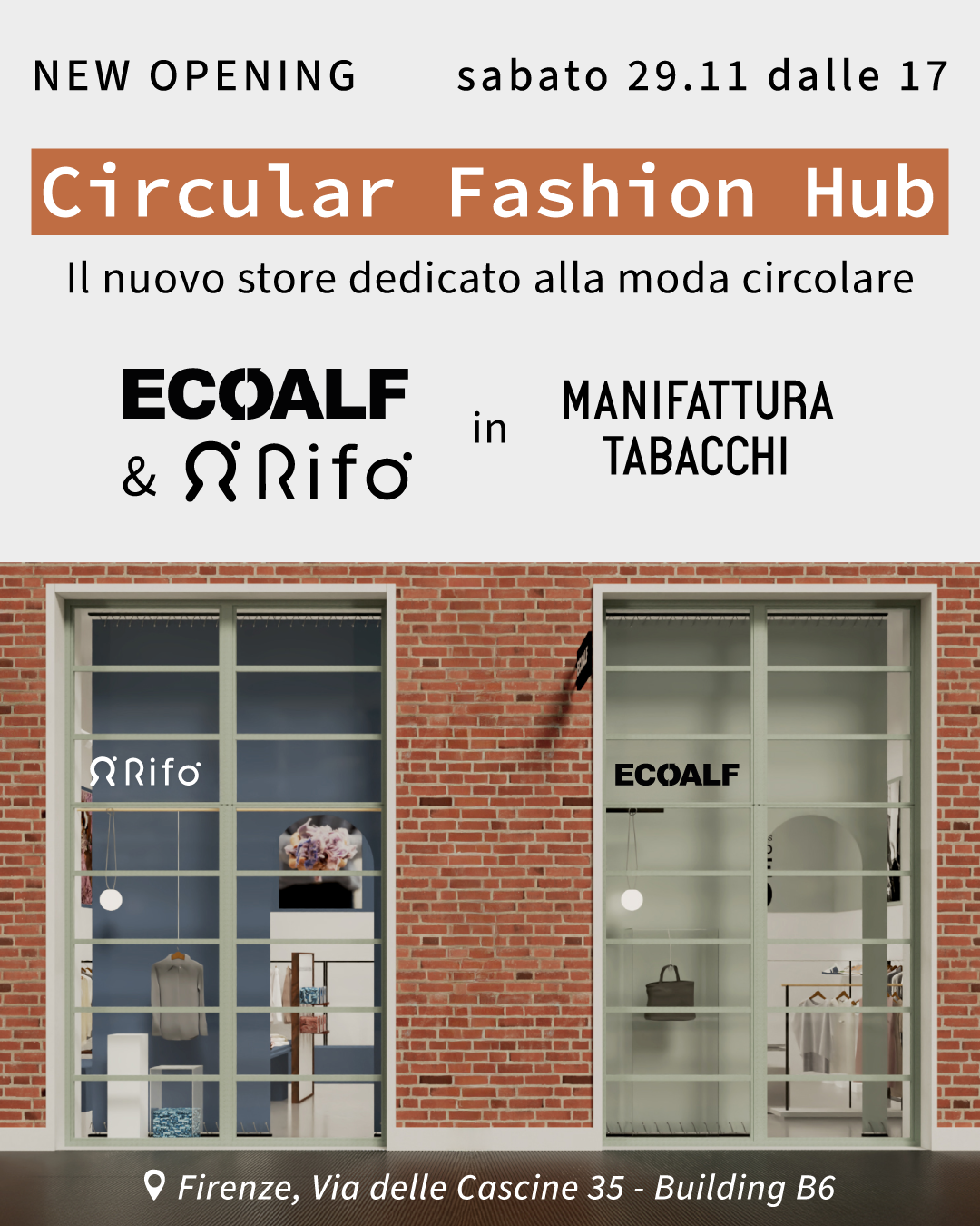 Arriviamo anche a Firenze, nel nuovo Circular Fashion Hub, uno spazio dedicato alla moda circolare condiviso con il brand spagnolo Ecoalf, con il quale condividiamo la missione della circolarità.